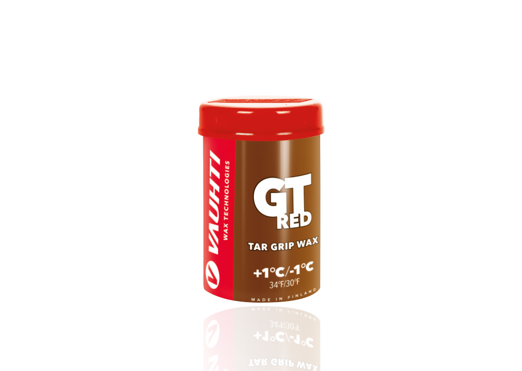 GT RED безфторовая смоляная мазь держания для натурального, нового, свежевыпавшего снега для диапазона температур +1/-1°C . Для старого и крупнозернистого снега можно использовать до -3°C.