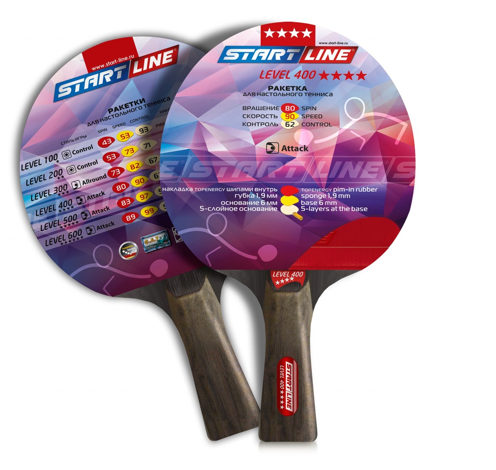 Ракетка для настольного тенниса Level 400 соответствует высокому современному стандарту качества, имеет обновленный дизайн, а также улучшенные технологические и игровые характеристики.