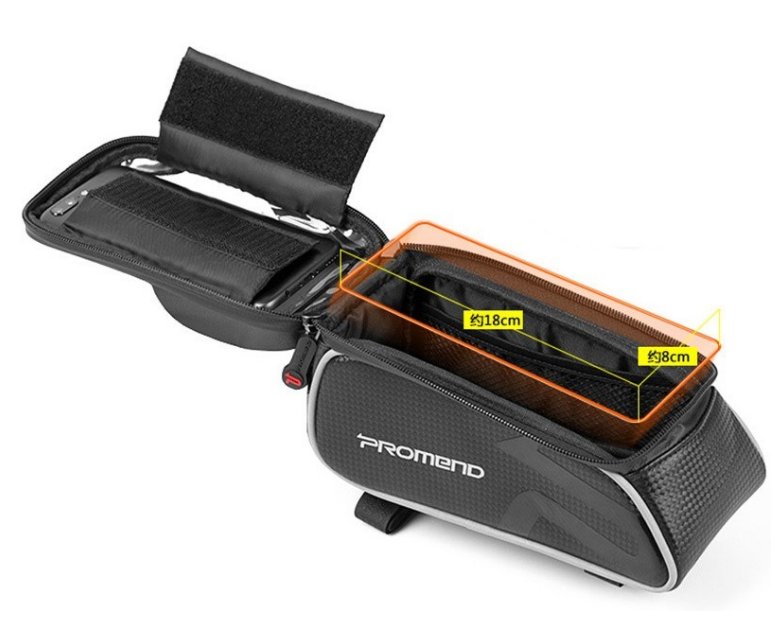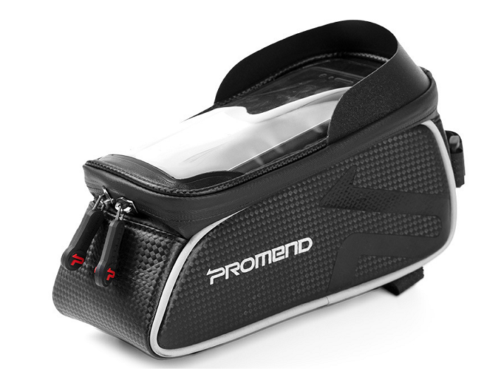 Велосумка на верхнюю трубу рамы Promend ZBB-14P58 с водонепроницаемым съемным отделением с тачскрином для 6-дюймового смартфона. Водонепроницаемые молнии.